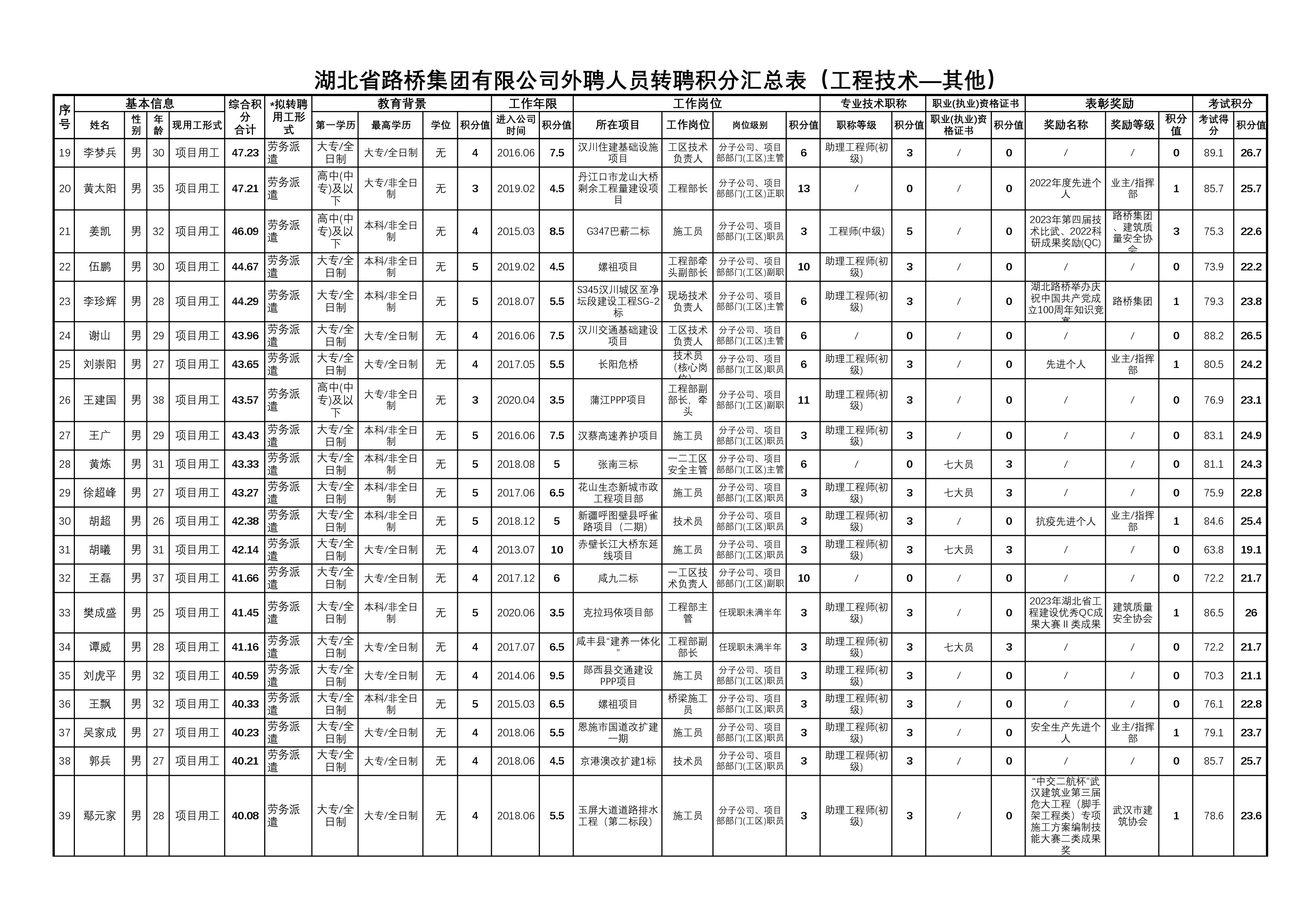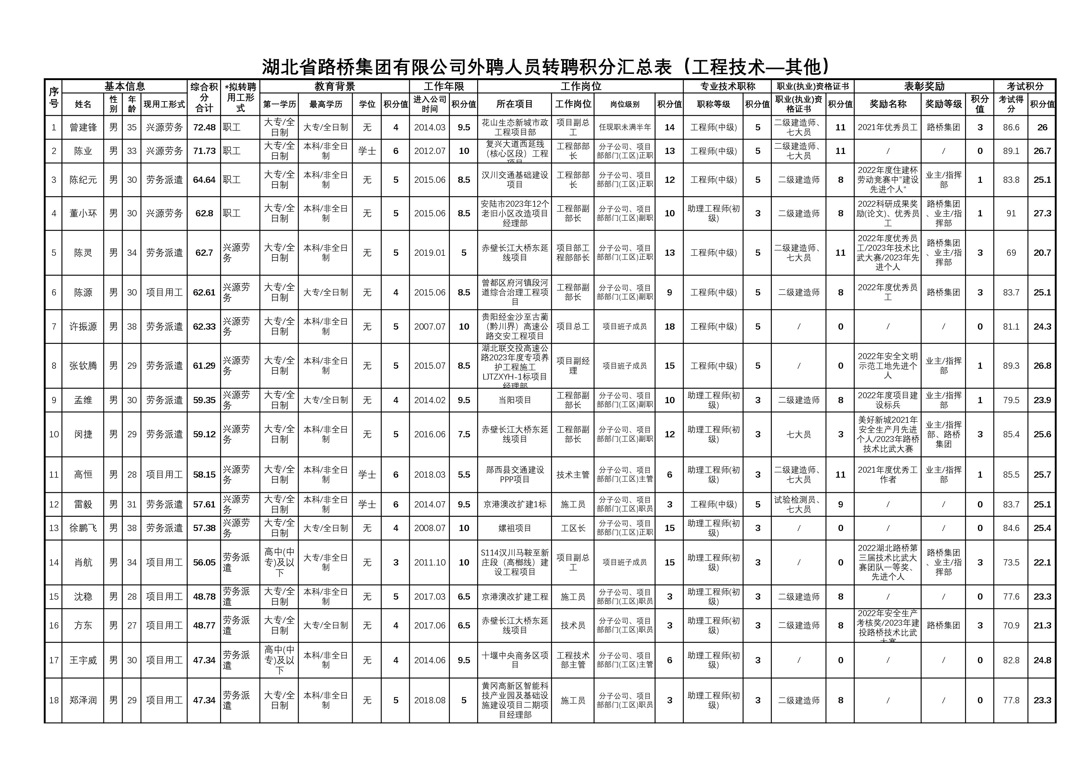 湖北省路橋集團(tuán)有限公司2023年度擬轉(zhuǎn)聘人員補(bǔ)充公示