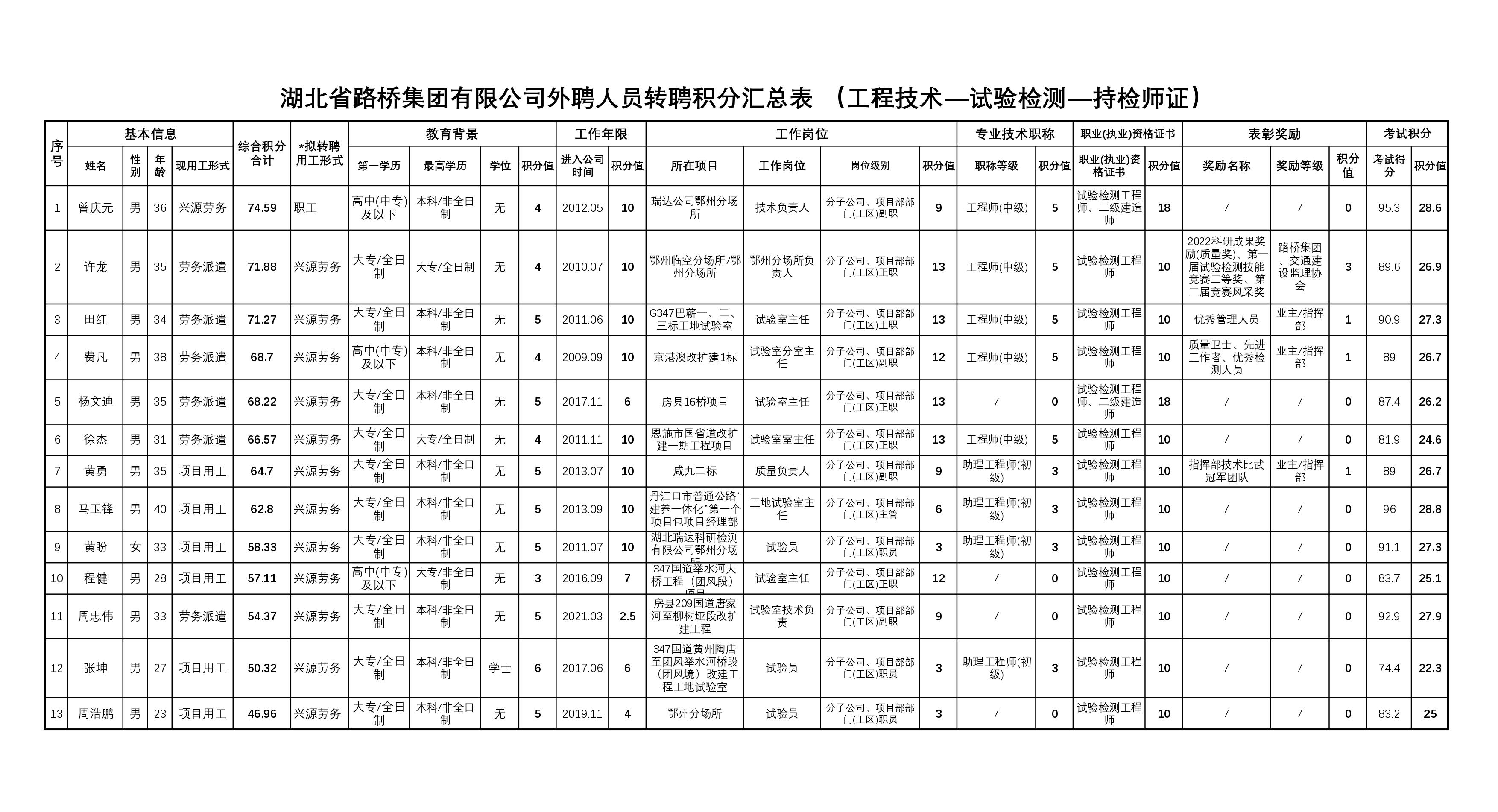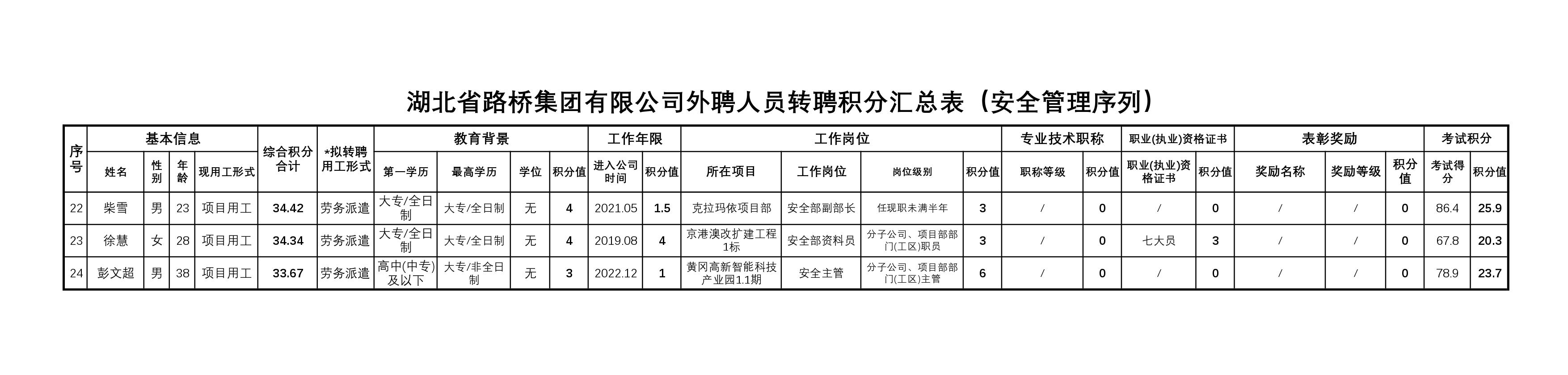 湖北省路橋集團(tuán)有限公司2023年擬轉(zhuǎn)聘人員公示
