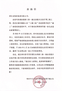 近日,湖北路橋高新八路一期品質(zhì)提升及改擴(kuò)建工程項目部收到鄂州市梁子湖區(qū)交通運輸局、鄂州市公安局交通管理局梁子湖大隊的感謝信及表揚信,對高新八路一期項目保質(zhì)保量完成建設(shè)任務(wù),如期實現(xiàn)全線貫通給予高度肯定。