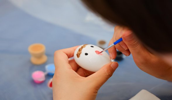 手工體驗(yàn)環(huán)節(jié),大家圍桌而坐,填充香料、綁扎絲帶、裝飾香囊,用畫(huà)筆和顏料裝飾自己最特別的那顆彩蛋……一筆一劃充滿喜悅、飽含祝福。
