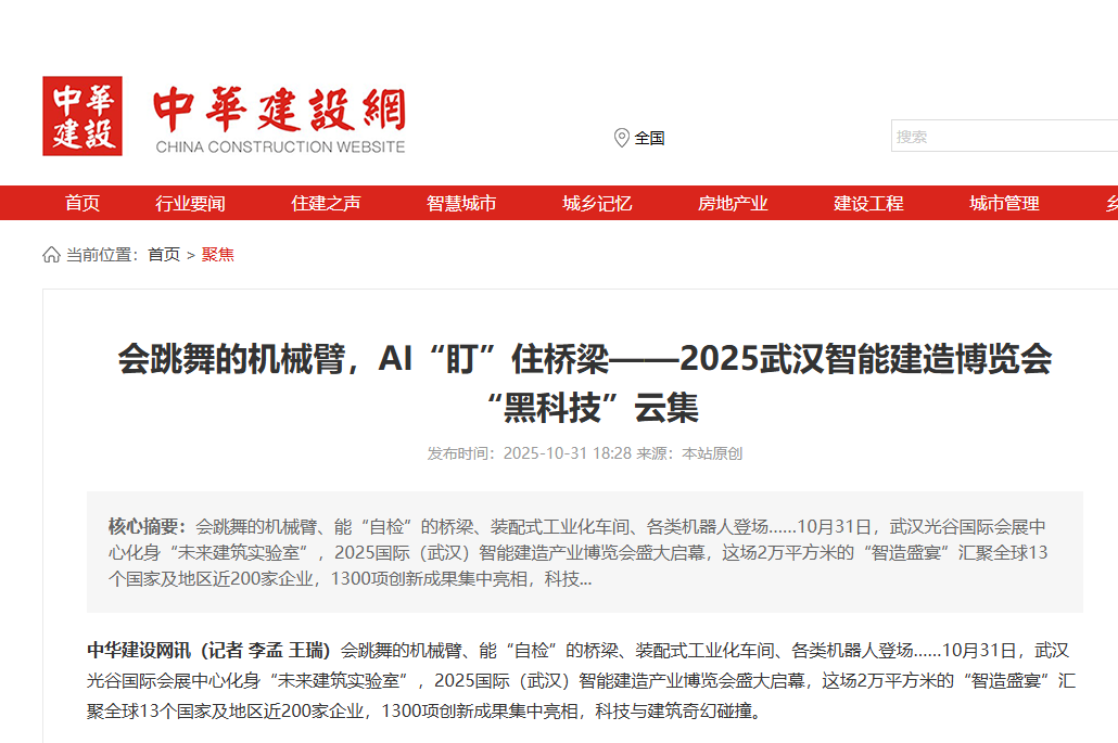 近日,2025國際(武漢)智能建造產業(yè)博覽會在武漢舉辦,聯(lián)投湖北路橋作為參展單位參加本次博覽會,中華建設網對聯(lián)投湖北路橋“黑科技”進行報道,以下是相關報道: